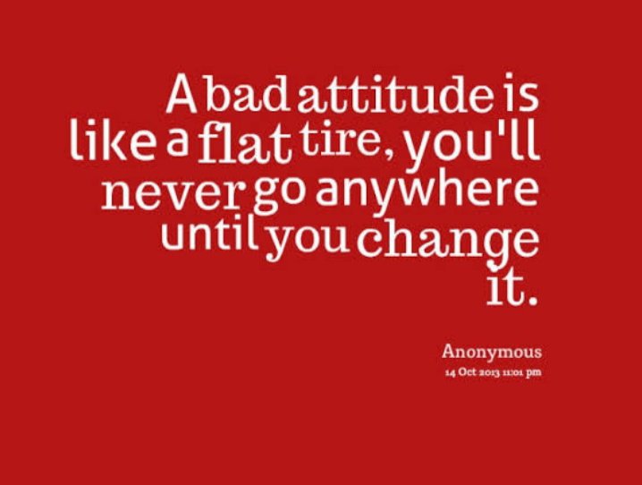 BAD ATTITUDE is attitude that is determined to others, yourself and /or a situation….A bad attitude is in no way helpful.It tends to aggravate situation ,raise tension,cause distraction and lower the opinion others have of that person..If we think negative thought we will definitely have negative feelings such as anger , disappointment , irritation,envy etc….